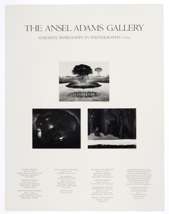 The influence of Ansel Adams on photography is immeasurable, and his long career as photographer, teacher, conservationist, and writer is legendary. His visionary belief in the redemptive beauty of wilderness was expressed in grand images that have popularized art photography among the American public. Adams was born in San Francisco, and trained as a musician; his interest in photography was catalyzed when he met Paul Strand in 1930. In 1932, with Imogen Cunningham, Edward Weston, and others, Adams founded the group f/64, which promoted use of large-format view cameras, small lens apertures, and contact printing. Adams developed this purist approach into the zone system, a controlled method of determining exposure and development. His deep respect for the grandeur of landscape motivated a lifelong involvement in conservation, which he advocated through photographic books and active membership in the Sierra Club.